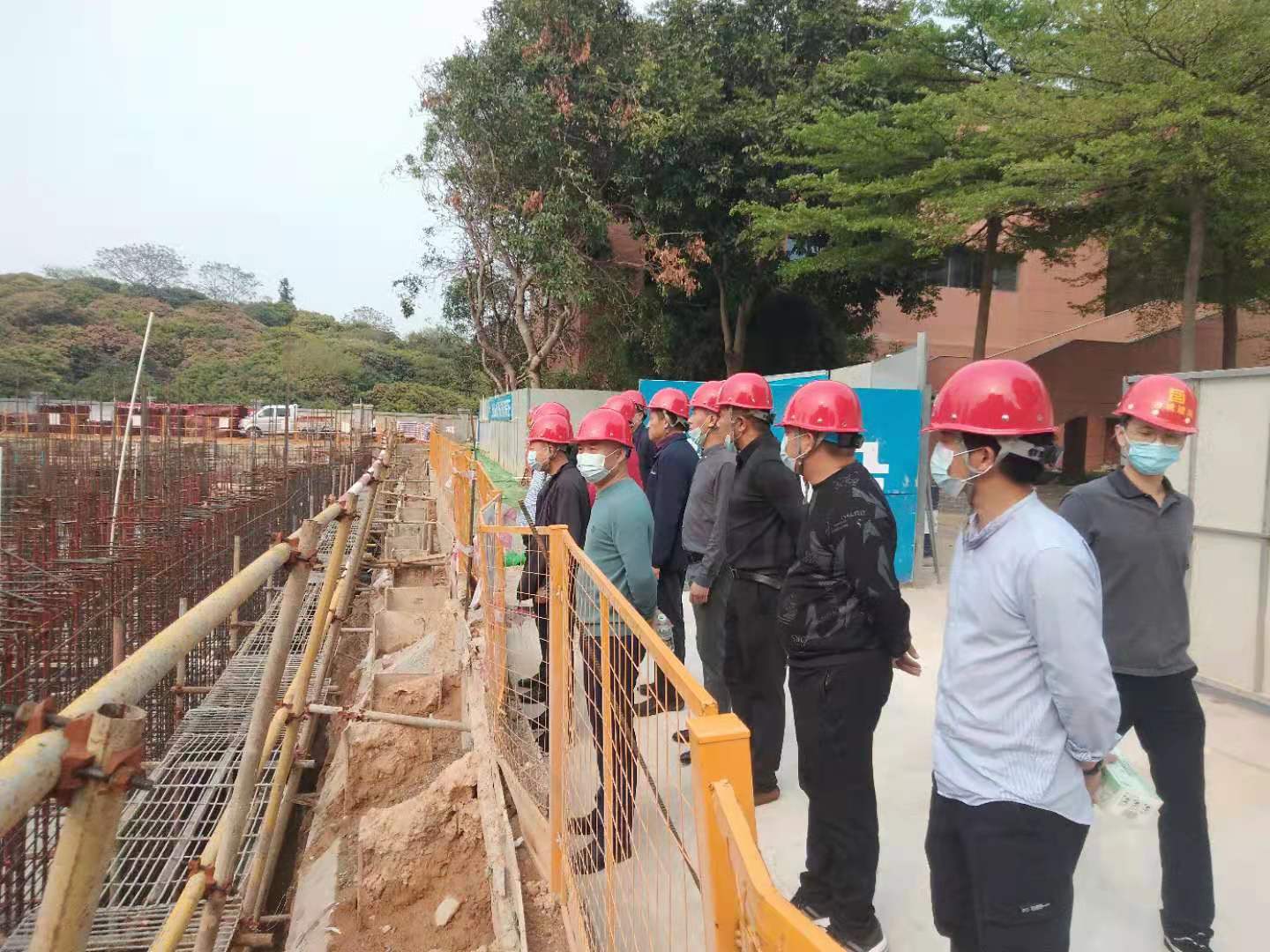 2021年3月9日,城建局祁局長、馬處長、陳科長和匯華集團董事長麥照華先生、常務(wù)副總經(jīng)理董桃元先生、副總經(jīng)理廖志峰先生等領(lǐng)導(dǎo)蒞臨企石七中項目現(xiàn)場指導(dǎo)工作。